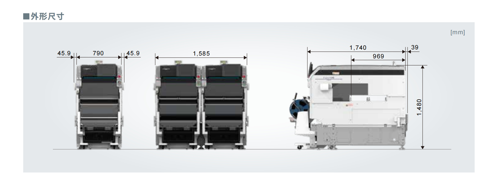 可根據(jù)電路板尺寸以及要搭載的供料器數(shù)量從2種模組中進行選擇。